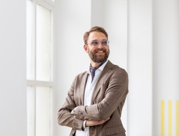 Sein Büro, hoch über den Dächern Freiburgs, ist gemütlich, bietet einen 360-Grad-Blick in die Natur und ist einfach zum Wohlfühlen.