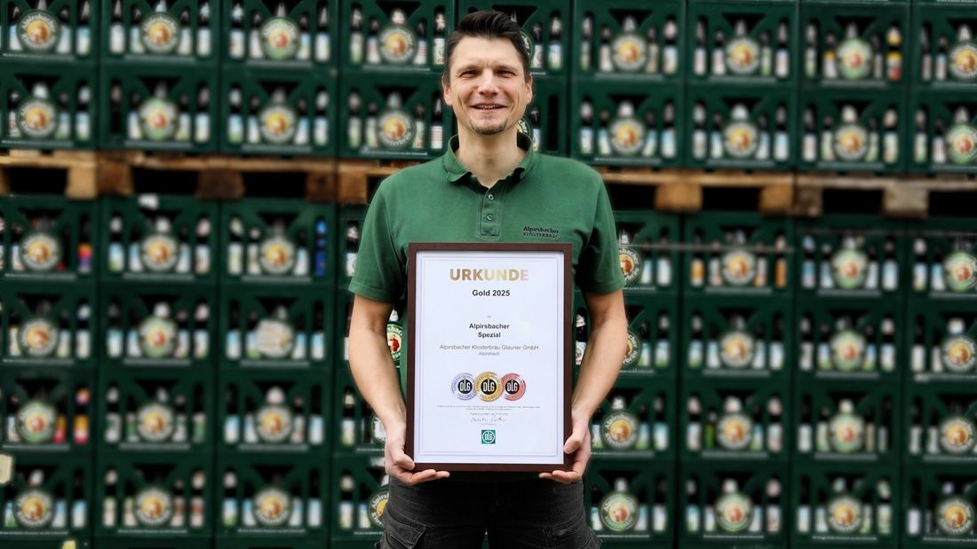 Jürgen Wöhrle, Leiter Qualitätsmanagement bei Alpirsbacher Klosterbräu, mit einer der begehrten Auszeichnungen