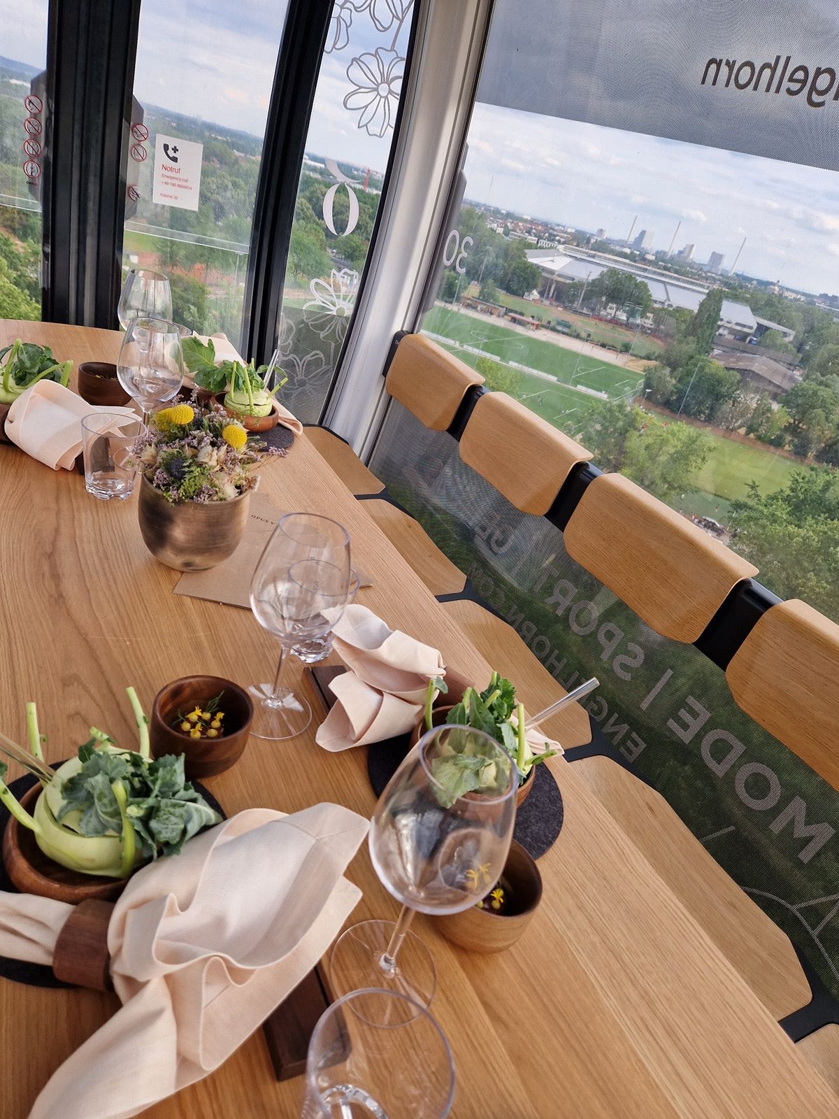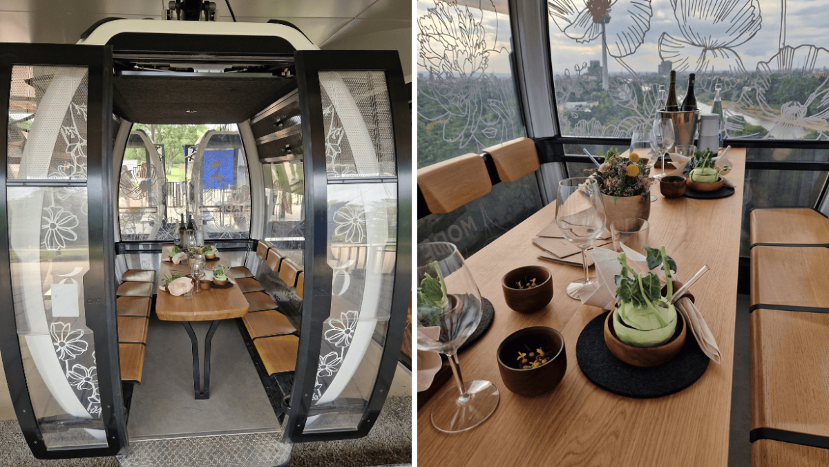 Die Zwei-Sterne-Küche des OPUS V in luftiger Höhe genießen engelhorn verwandelt Seilbahngondeln der Mannheimer BUGA 23 in schwebende Restaurants