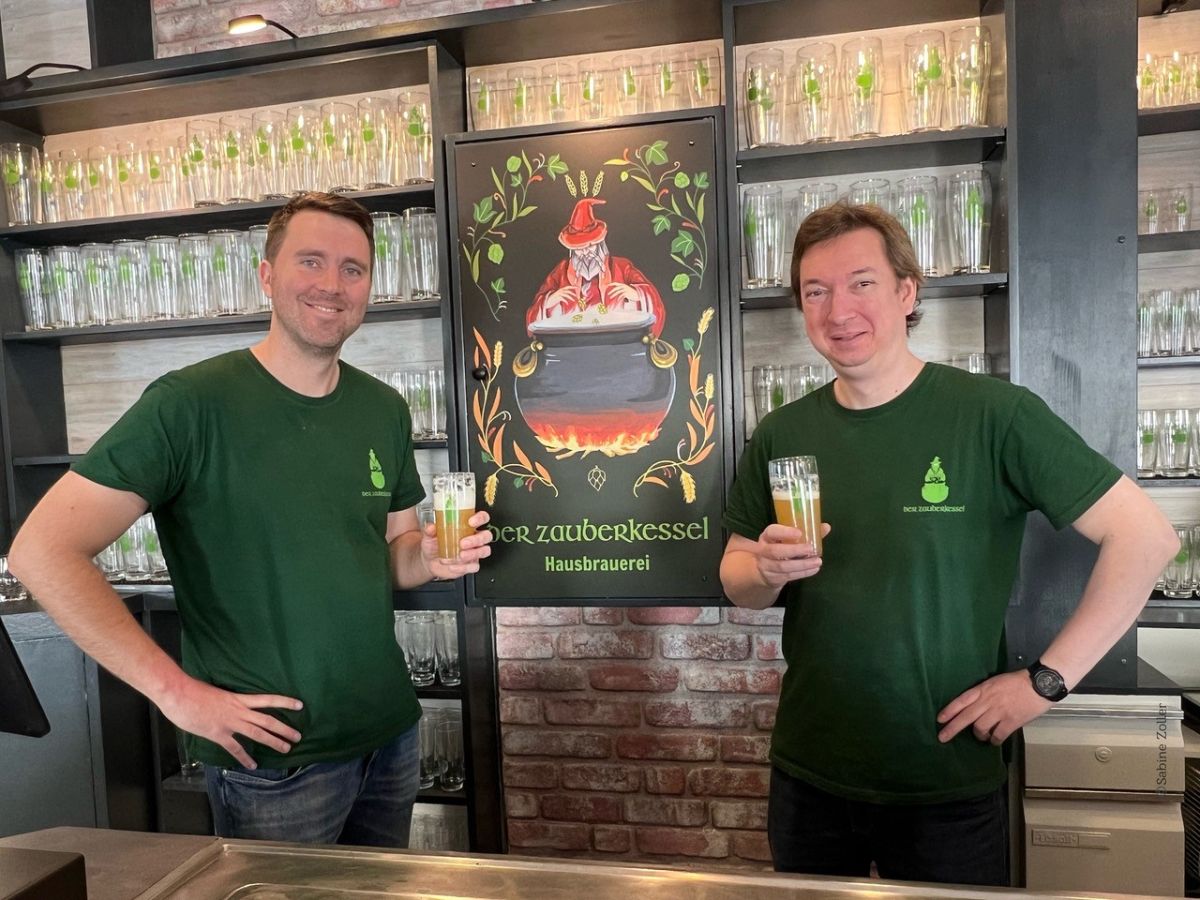 „Der Zauberkessel“ lautet der Name der neu eröffneten Brauereigaststätte in Durlach, mit dem sich die beiden Quereinsteiger John Raezer (36) und Felix Steinhardt (39) einen lang gehegten Traum erfüllten. „Wir haben aus unserem Hobby einen der schönsten Berufe gemacht, die es gib“, so unisono der Tenor der beiden Craft Beer Brauer, die mit ihrer Braukunst besondere Biere anbieten.