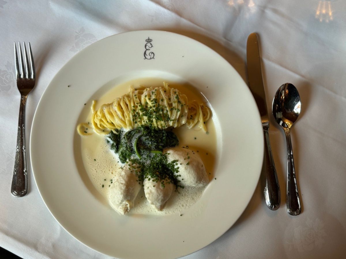 „Wenn ich im Erbprinz in Ettlingen bin, brauche ich keine Speisekarte. Ich bestelle stets die Hechtklößchen“, erklärt Marianne Zorn, Honorarkonsulin des Königreichs Thailand für Baden-Württemberg a.D., die die kulinarische Besonderheit mit feinen Nudeln, Spinat und Rieslingschaum genießt.
