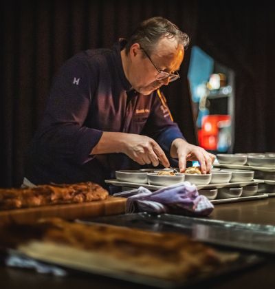 Bis zu 200 Gäste können zeitgleich bewirtet werden. Da das Menü für alle gleichzeitig beginnt, ist eine große Zahl an Servicemitarbeitern erforderlich. „Die Größe eignet sich aber ideal für Firmenevents, was für uns sehr wichtig ist“, betont Schmidt, einer der vier Geschäftsführer der Bliss-Gastronomiegruppe hinter der Stories Pop-Up-Kitchen. Er rechnet auch in diesem Jahr wieder mit zahlreichen Firmenveranstaltungen. „Ein Restaurant dieser Art gibt es schließlich in Heidelberg nicht.“ Der Aufwand dafür aber ist immens. Im Erdgeschoss des Gebäudes, das inzwischen der Kraus Immobiliengruppe gehört, wurden über acht Wochen lang neue Teppiche verlegt, Vorhänge und Möbel ab- und aufgebaut sowie neue Kabel und Lampen angebracht.