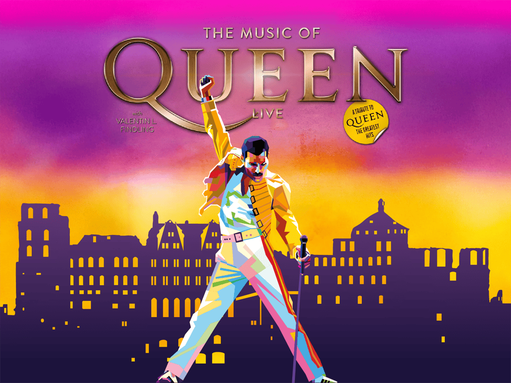 Erstmalig 2020 verwandelte sich dann Valentin L. Findling in den Ausnahmekünstler Freddie Mercury. Mit seiner unverwechselbaren Stimme, seinem frappierenden Look und seiner energiegeladenen Präsenz auf der Bühne erweckt er den Eindruck, Freddie sei zurück. Damit nahm Findlings Karriere als QUEEN-Frontmann vor fünf Jahren im Heidelberger Schloss seinen Anfang; seither reist der charismatische Sänger mit der Band um Bandleader Andy Keller quer durch die Republik. Wo immer sie auftreten, sind Euphorie und ausgelassene Stimmung garantiert. Immer wieder wird der Sänger von der Presse und dem Publikum als authentischster Mercury-Darsteller Deutschlands gefeiert. Doch obwohl er dem berühmten Rockstar verblüffend nahekommt, versteht sich Findling nicht als bloße Kopie. Als ausgebildeter Pianist und Sänger drückt er jedem Konzert seinen eigenen Stempel auf: „Valentin live als Freddie zu sehen und zu hören, ist definitiv ein Erlebnis. Seine Konzerte sind immer ausverkauft und demnächst geht er mit seiner Band sogar nach Japan. Umso mehr freuen wir uns, dass wir die Band und ihn noch einmal auf unserer Bühne präsentieren können“, sagt Martin Scharff als Veranstalter. „Mit der Musik von QUEEN sind Gänsehautmomente vorprogrammiert. Unsere Light- und Soundshow, die wir im typischen Stil der 80er-Jahre planen, wird das Retro-Gefühl noch steigern.“ Der Königssaal wird wieder ein rundum Klangerlebnis bieten. Das Lichtkonzept sieht große Strahler und Lichtpanels wie zu Zeiten der großen Live-Konzerte von QUEEN vor in Verbindung mit modernen Lichtsystemen für eine größtmögliche visuelle Wirkung.