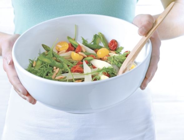 Zutaten für 12 bis 15 Personen: • je 800 g weißer und grüner Spargel • 1 Scheibe von einer unbehandelten Zitrone • 1 EL Butter • je 250 g rote und gelbe Kirschtomaten • 50 g Pinienkerne • 200 g Rucola • 1 EL…