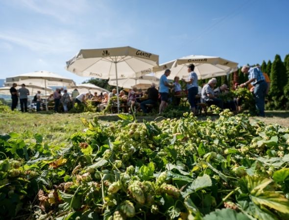 Ernte im Dreisamtäler Hopfengarten der Brauerei GANTER