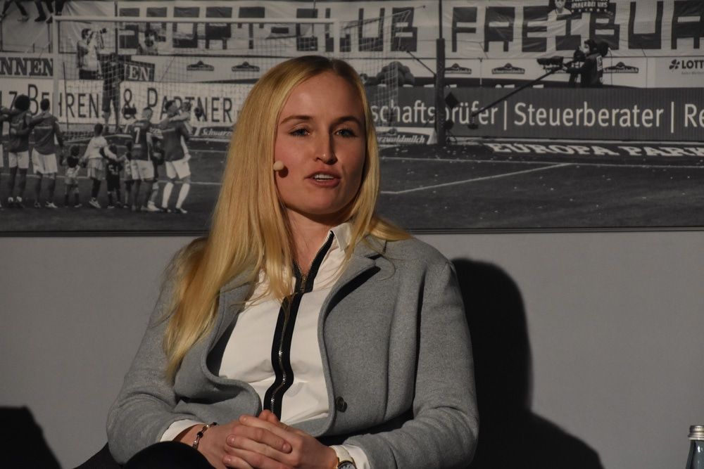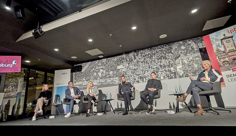 Frauenfußball und Männerfußball sind zwei grundverschiedene Paar Stiefel. Das wurde bei der Diskussion im Europa-Park Stadion in Freiburg mehr als verdeutlicht. Im Gespräch des vom SWR (die Landeszentrale für politische Bildung) und dem SC Freiburg initiierten Formats waren bei einer Beteiligung von rund 100 Zuhörern dabei: die SC Spielerinnen Hasret Kayikci und Janina Minge, Cheftrainerin Theresa Merk, ZDF-Reporterin Claudia Neumann, DFB-Koordinatorin "Frauen im Fußball" Doris Fitschen sowie Hans-Martin Hellebrand (badenova). Moderiert wurde die Podiumsdiskussion von Felicia Mutterer, Journalistin und Managerin beim FC Viktoria Berlin.