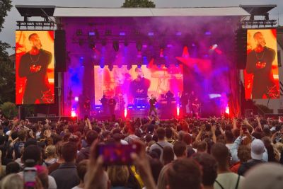 Schon beim ersten Beat war klar, dass dieses Konzert ein Statement werden würde und dieser Abend garantiert nicht leise wird. Kontra K, bekannt für seine tiefgründigen Texte und seine kompromisslose Bühnenpräsenz, zog das Publikum mit einer Mischung aus kompromissloser Intensität und ehrlicher Nahbarkeit sofort in seinen Bann. Songs wie „Erfolg ist kein Glück“, „Sonne “, Kopf Gef***,"Letzte Träne", "Monster" oder „Für den Himmel durch die Hölle “trafen mitten ins Herz und das nicht nur bei eingefleischten Fans. Der Regen? Kein Hindernis. Ganz im Gegenteil - Das Publikum sang und sprang im Takt, als gäbe es nur diesen einen Moment. Die feurige Lightshow, der donnernde Bass und die authentische Message des Künstlers verschmolzen zu einem Gesamtkunstwerk aus Musik, Emotion und Gemeinschaftsgefühl. Mit klaren Worten sprach er über Stärke, Loyalität und das Durchhalten in schweren Zeiten. Kontra K lieferte nicht nur einfach ein Konzert, er hat gezeigt, was es heißt, sich selbst treu zu bleiben und aus eigener Kraft aufzustehen – immer wieder.