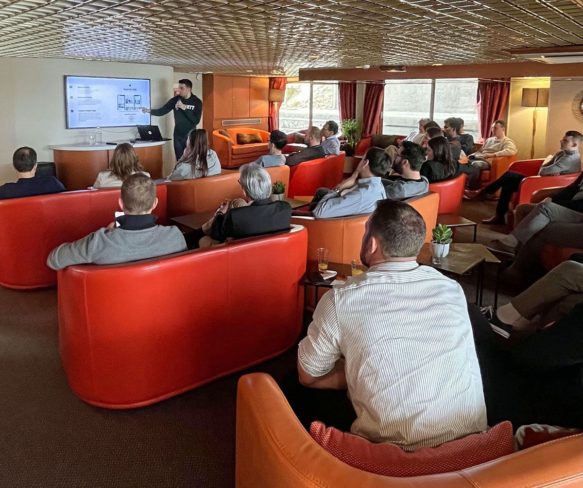 146 Teilnehmerinnen und Teilnehmer auf dem ersten trinationalen Start-up-Schiff