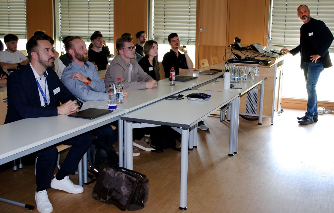 Mit dem wachsenden Können von Künstlicher Intelligenz wird auch das Thema Unternehmens- und IT-Sicherheit noch wichtiger als ohnehin schon. So wurde erst vor wenigen Tagen bekannt, dass Anthropic die Software seines KI-Modells Claude Mythos nicht allgemein zugänglich machen möchte, da Hacker mit dieser ohne großen Aufwand unzählige unbekannte Sicherheitslücken in bisher als sicher geltenden IT-Systemen aufspüren und ausnutzen könnten. Ein Grund mehr das 15-jährige Bestehen des Bachelor-Studiengangs Unternehmens- und IT-Sicherheit (UNITS) der Hochschule Offenburg zu feiern. Studiendekan Andreas Schaad hatte daher im Rahmen der Veranstaltungsreihe Unternehmen Zukunft von Hochschule Offenburg und Zukunft.Raum.Schwarzwald Unternehmensvertreter*innen, Alumni und Studierende zu einem Austausch über Forschungsprojekte, Karrierewege von UNITS-Absolventinnen und -Absolventen sowie Herausforderungen in dem dynamischen Fachgebiet eingeladen. Das Interesse war so groß, dass zusätzliche Stühle in den vollbesetzten Hörsaal gebracht werden mussten.