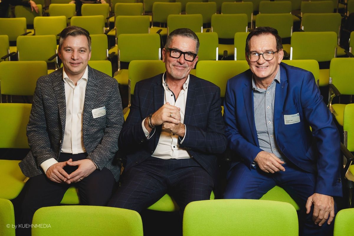 Freuten sich über rund 100 Besucher beim Vortrag am 19.02.2024: Geschäftsführender Vorstand des Marketing-Club Ortenau/ Offenburg Florian Schneider, Keynote-Speaker Klaus J. Fink und Club-Präsident Duschan Gert (v. l. n. r.)
