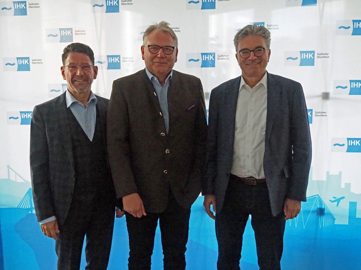 Von links: Dr. Michael Faller, geschäftsführender Gesellschafter von Faller Packaging in Waldkirch und stellvertretender Präsident der IHK Südlicher Oberrhein, IHK-Präsident Eberhard Liebherr und IHK-Hauptgeschäftsführer Dr. Dieter Salomon.