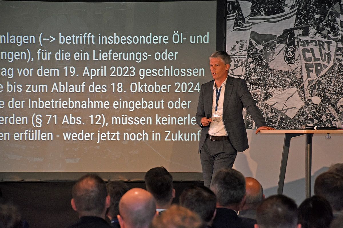 Nobert Neuhaus ( Viessmann) referiert über den Heizungsmarkt im Wandel Dekarbonisierung des Wärmesektors als zentrale Herausforderung