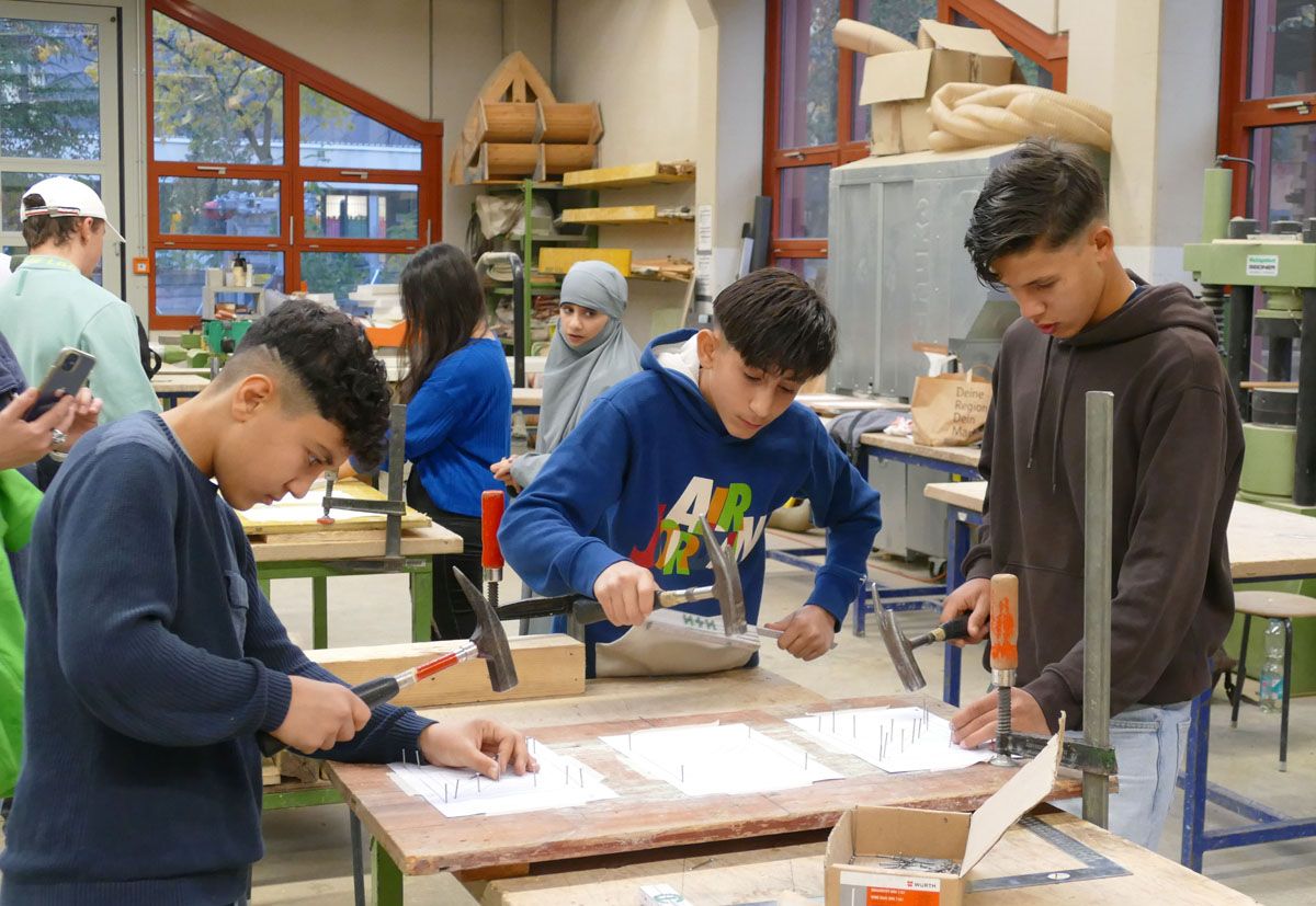 Beim Gang durch die Werkhallen konnten die Schülerinnen und Schüler die Bauberufe hautnah erleben