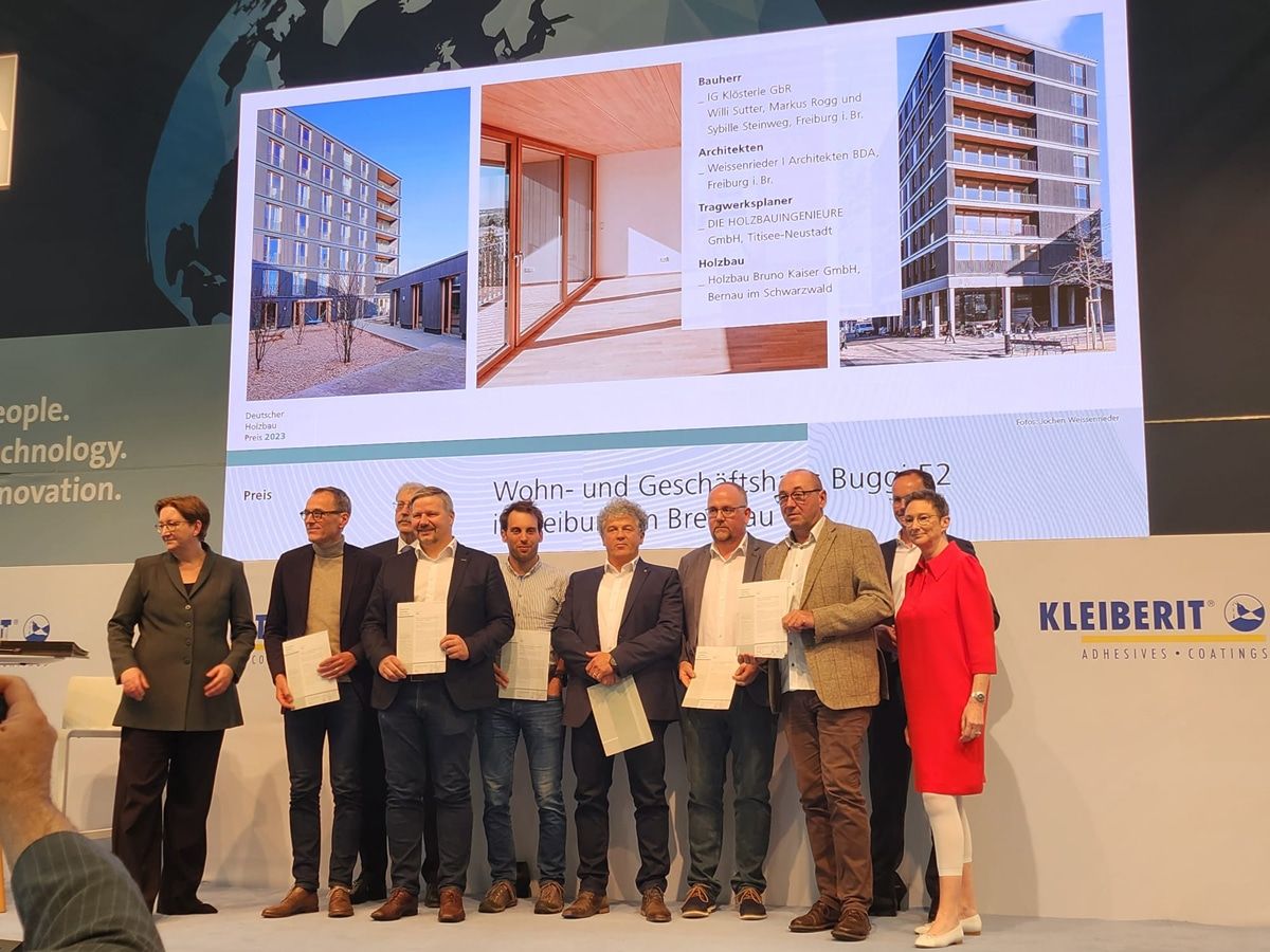 Heute wurde auf der Ligna in Hannover das Wohn- und Geschäftshaus Buggi 52 in Freiburg mit dem Deutschen Holzbaupreise 2023 ausgezeichnet.