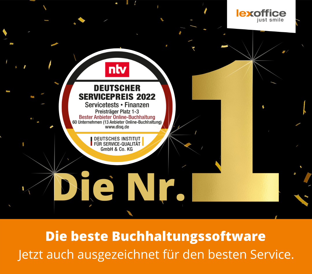 Freiburg, 17. Februar 2022. Seit zehn Jahren erhält die Online-Buchhaltungslösung lexoffice Bestnoten in unabhängigen Tests der Fachpresse. Durch die aktuelle Auszeichnung mit dem renommierten „Deutschen Servicepreis 2022“ vom Deutschen Institut für Servicequalität und dem TV-Sender n-tv wurde lexoffice jetzt offiziell auch zur Online-Buchhaltung mit dem besten Service gekürt. Und ist somit die beste Online-Buchhaltungslösung auf dem Markt