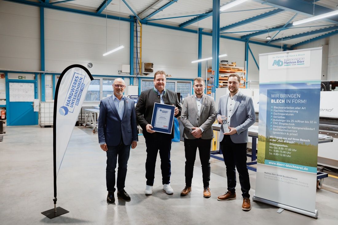 Die Baublechnerei Mathias Dörr GmbH überzeugt durch digitale Prozesse, innovative Onlineangebote und breite handwerkliche Kompetenz. Der Familienbetrieb mit rund 50 Mitarbeitenden verbindet regionale Dienstleistungen mit europaweit gefragten Blechlösungen. Nachhaltigkeit, Recycling, Klimaschutz, eine erfolgreiche Ausbildungsstrategie und starkes gesellschaftliches Engagement prägen das Unternehmen.