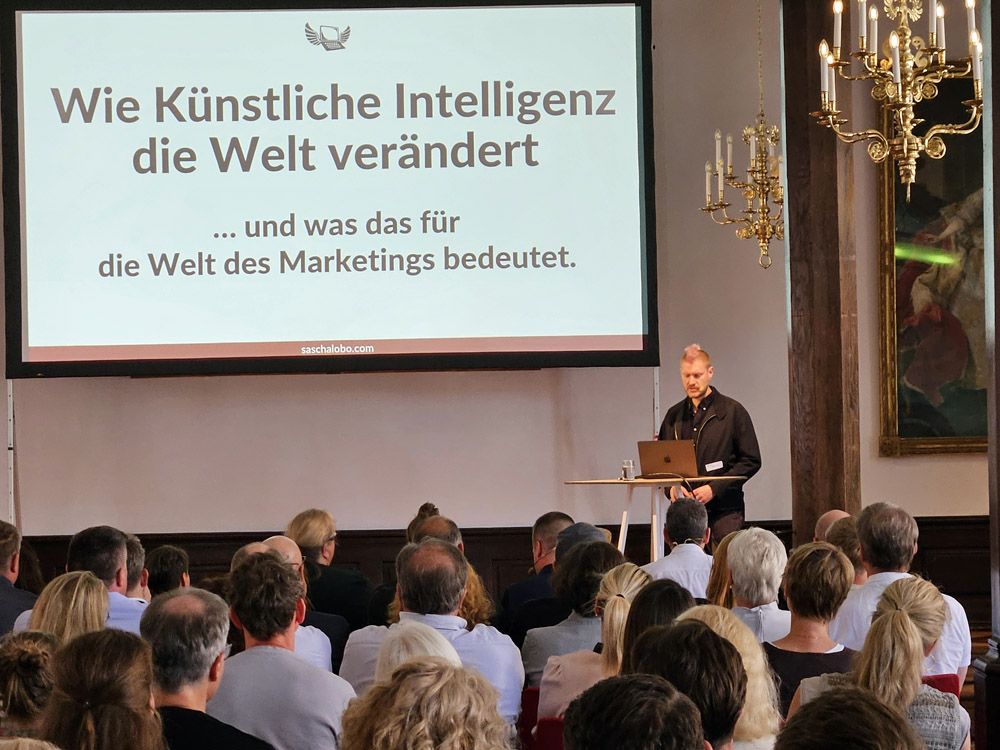 Autor und Digitalexperte Sascha Lobo, gab einen pointierten Überblick über die gesellschaftlichen und wirtschaftlichen Veränderungen durch KI und welche Rolle Marketing dabei spielt.