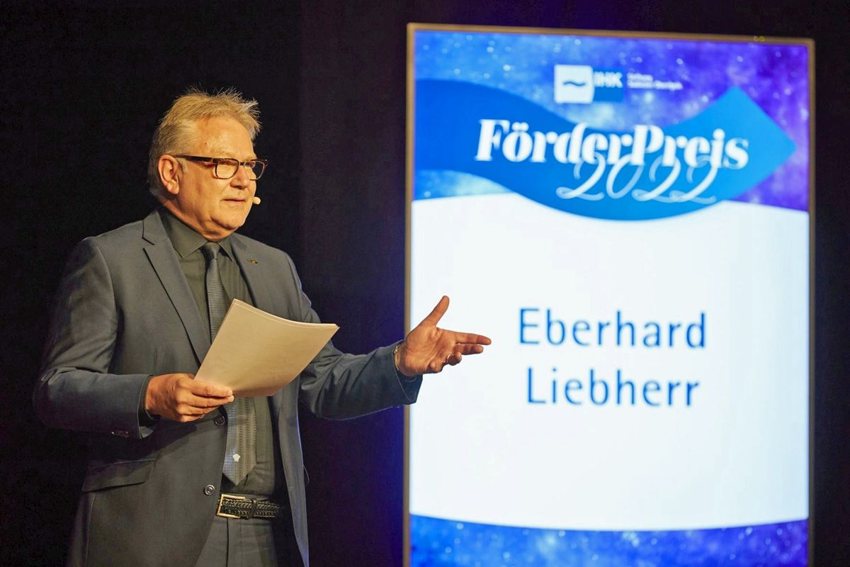 Eberhard Liebherr, Präsident der IHK Südlicher Oberrhein lobte bei seiner Begrüßungsrede das Engagement der Preisstifter, die gemeinsam eine Summe von 101.500 Euro an Preisgeldern zur Verfügung gestellt hatten.