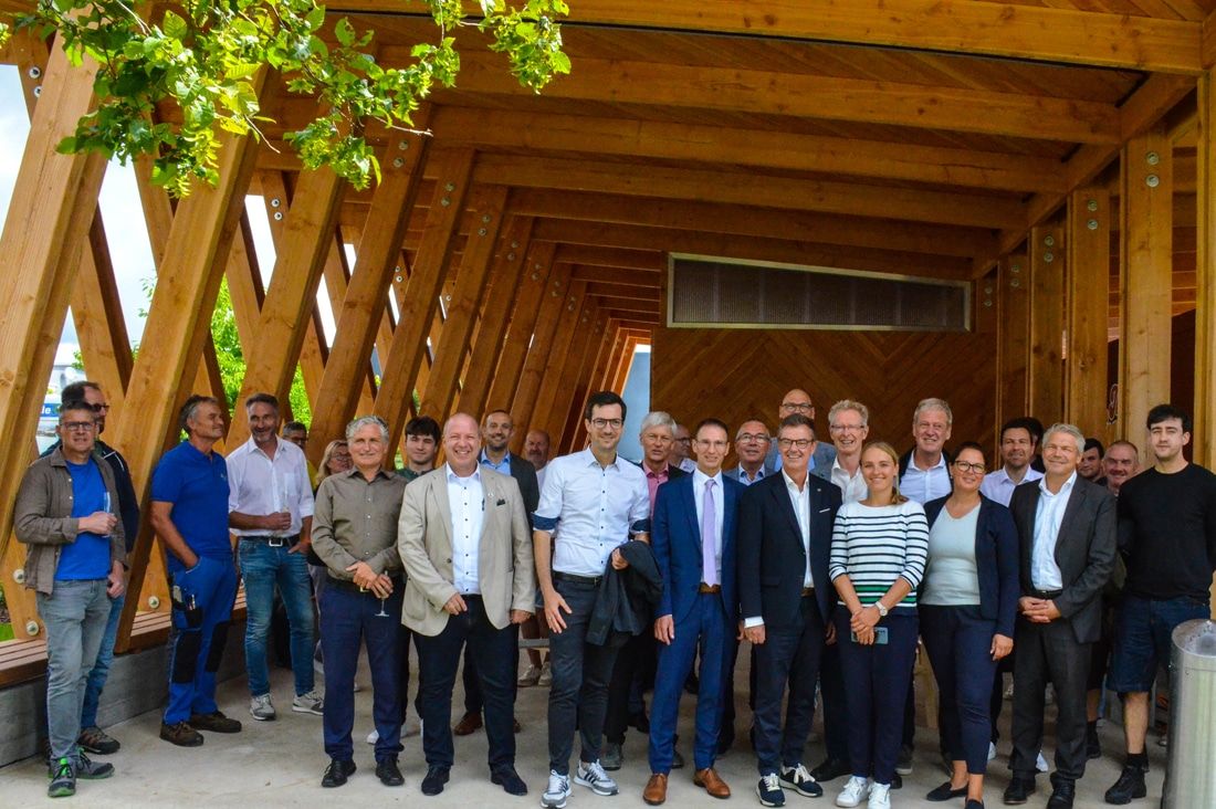 „Heute ist ein guter Tag für den Gewerbepark Breisgau. Der Pavillon und die Freiflächen sind ein Anschauungsobjekt für die Unternehmen hier und sind ein Ort, an dem man sich gerne aufhält. Ich kann mir vorstellen, dass diese Location auch von den Unternehmen im Gewerbepark für Veranstaltungen genutzt wird“, sagte Verbandsdirektor Markus Riesterer. Zweckverbandsvorsitzender Volker Kieber und der Freiburger Oberbürgermeister Martin Horn lobten die Stärkung der Aufenthaltsqualität im öffentlichen Raum des Gewerbeparks.