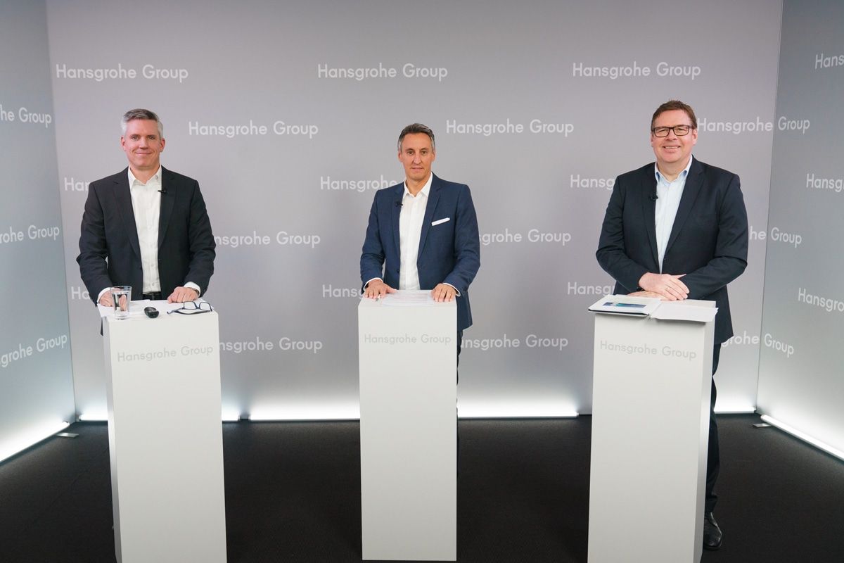 v.l.n.r.: Jörg Hass Corporate Communications , Hans Jürgen Kalmbach Vorsitzender des Vorstands Hansgrohe SE und André Wehrhahn Vorstand Finanzen Hansgrohe SE