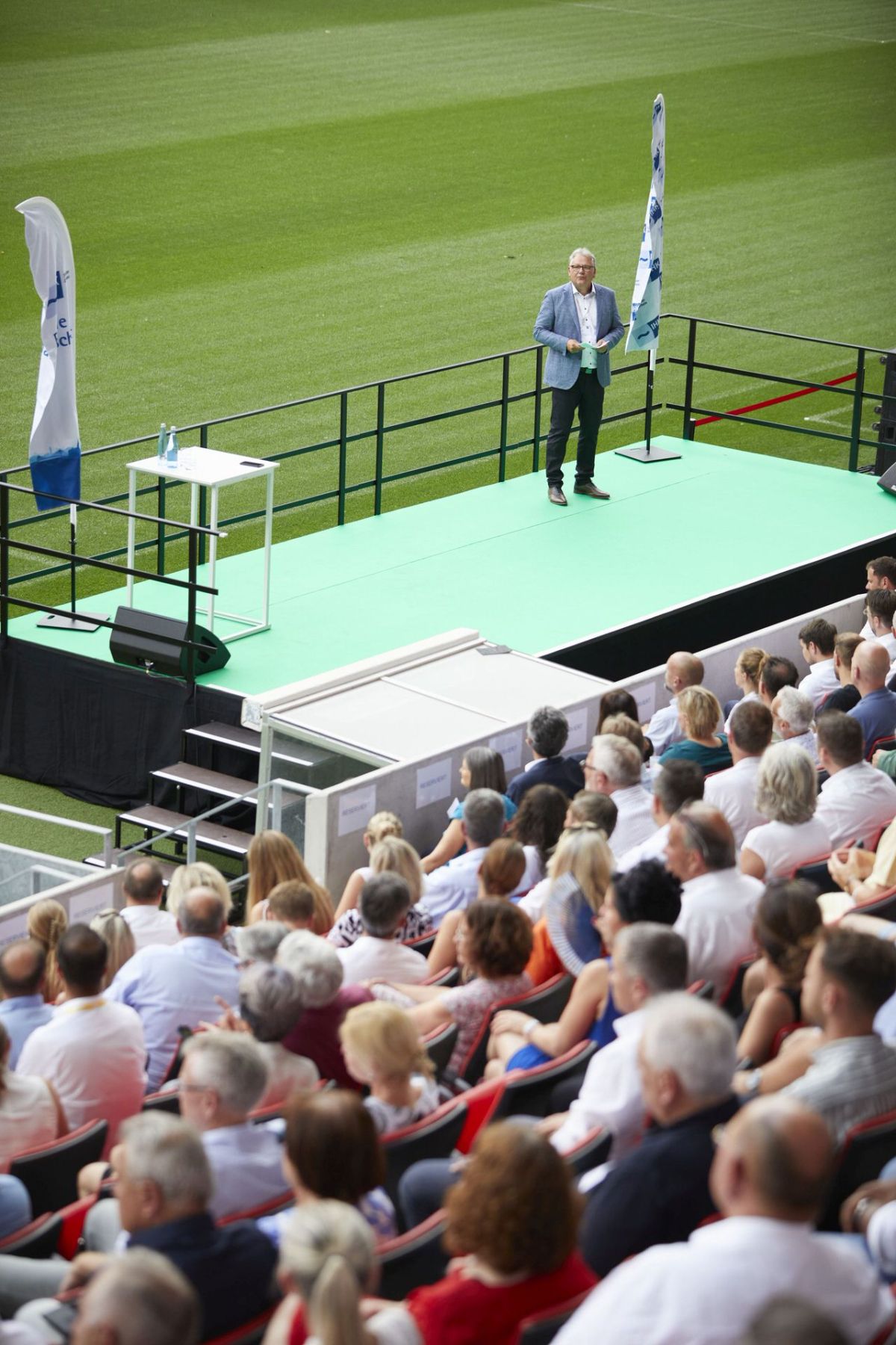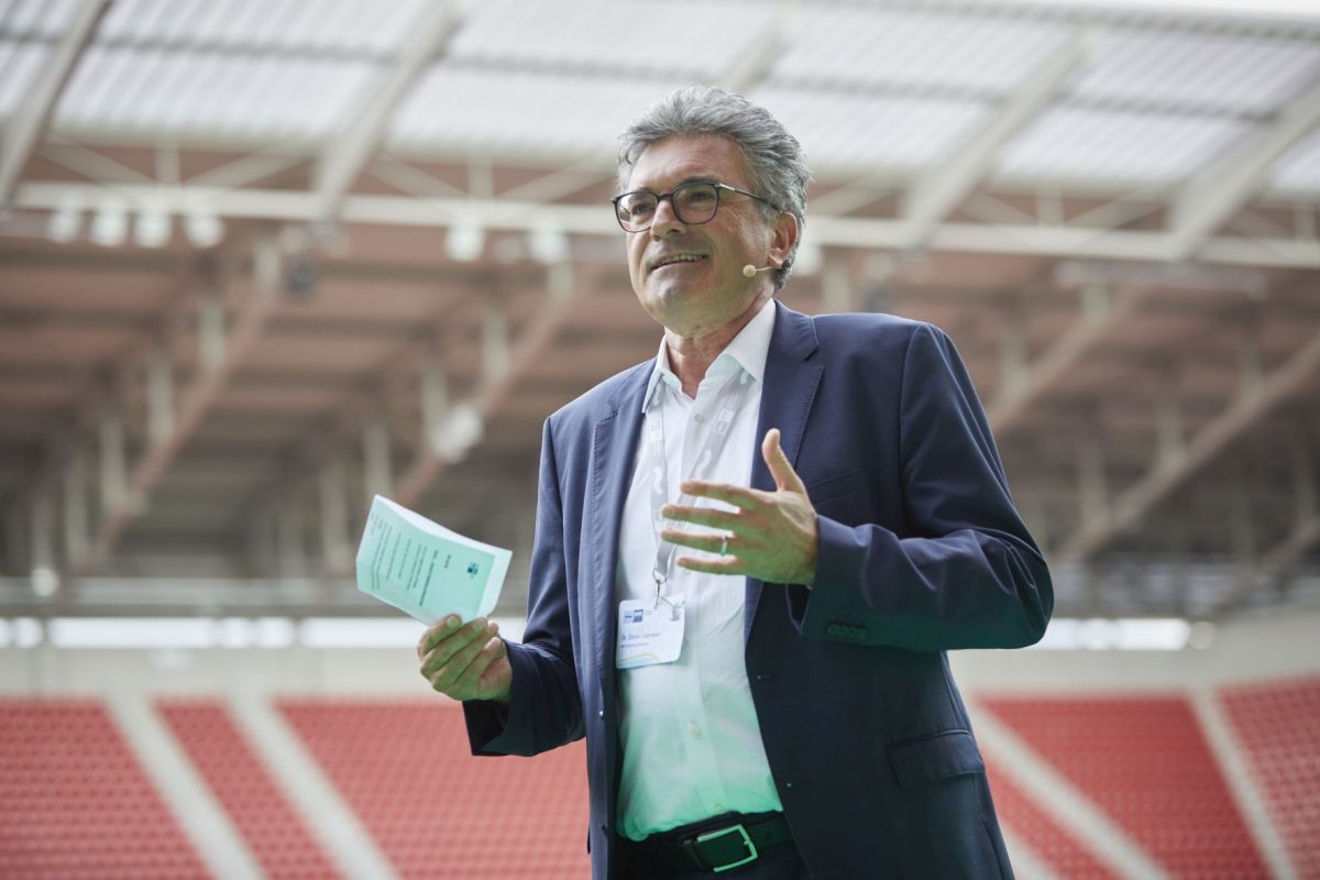 „Fußball bedeutet neben Geschicklichkeit, Leidenschaft und Emotionen auch permanenten Wettbewerb und Erfolgsdruck. Dasselbe gilt für Unternehmer:innen. Deshalb sind Sie eigentlich auch alle Spitzensportler. Daher passt die Umgebung der neuen Arena ideal zu unserer Jahres-Netzwerkveranstaltung“, sagte Eberhard Liebherr, Präsident der IHK, zur Begrüßung. „Beim Mannschaftssport Fußball gibt es in der Regel keine Einzelkämpfer, es braucht eine starke Gemeinschaft, um erfolgreich agieren zu können. Auch in der Gemeinschaft der IHK Südlicher Oberrhein gibt es diesen Mannschaftsgeist. Gemeinsam wollen wir Impulse setzen und die Region voranbringen“, ergänzte Dr. Dieter Salomon, Hauptgeschäftsführer der IHK.