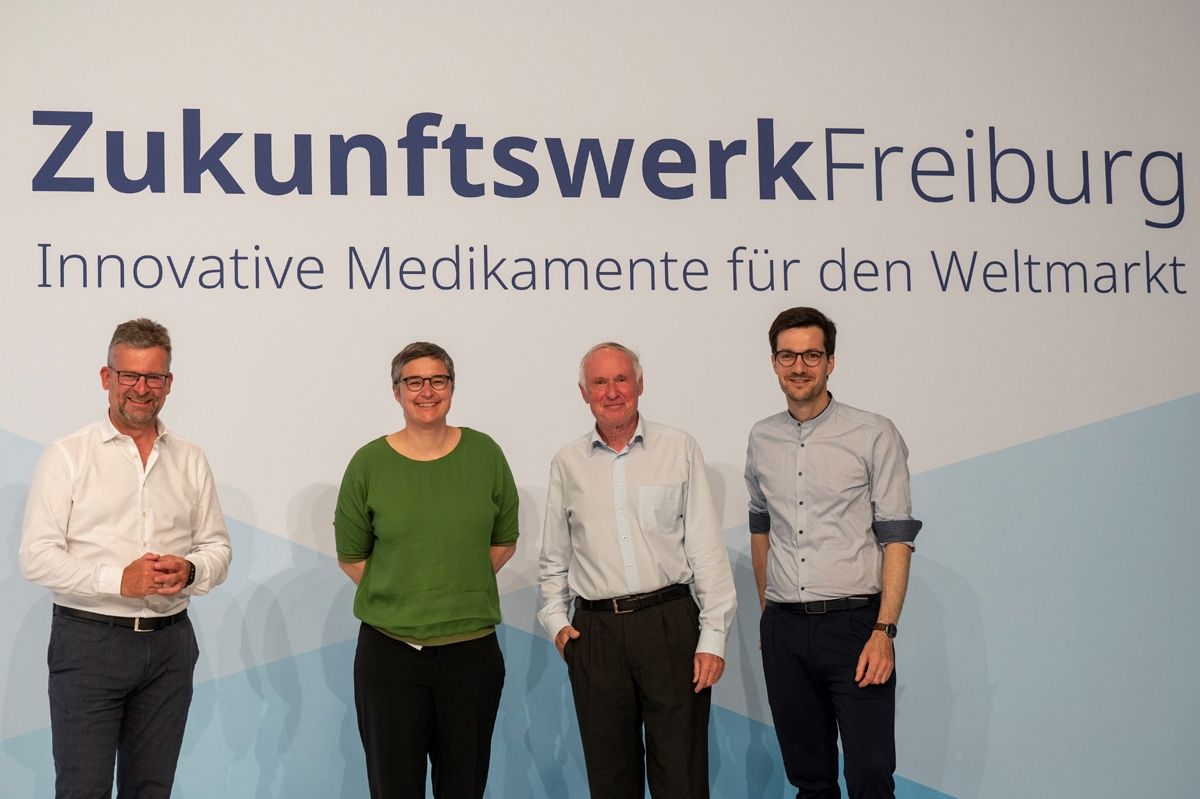 v.l.n.r.: Peter Neske , Innovation Lead Pfizer Healthcare Hub Freiburg, FWTM-Geschäftsführerin Hanna Böhme, Dr. Axel Glatz, Leiter des Produktionsstandortes Pfizer Freiburg und Oberbürgermeister Martin Horn.