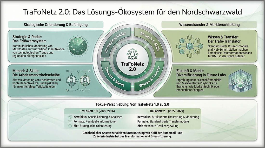 „Der Nordschwarzwald gehört zu den starken Regionen in Deutschland und steht gleichzeitig vor großen Herausforderungen. Gerade deshalb ist es unsere gemeinsame Aufgabe, den tiefgreifenden Wandel der Automobil- und Zulieferindustrie aktiv zu begleiten. Mit TraFoNetz 2.0 bündeln wir die Kräfte von Wirtschaft, Wissenschaft, Arbeitsmarktakteuren und Politik, um Unternehmen und Beschäftigten in der Region eine verlässliche Perspektive zu geben.“