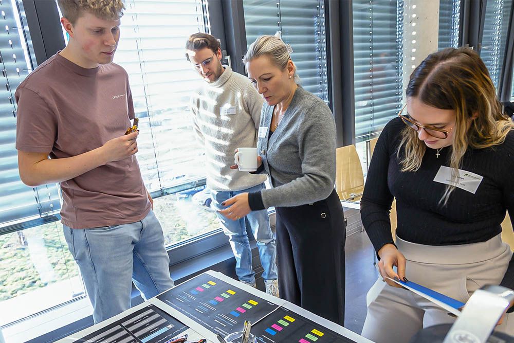 Zeigten mit dem TraFoNetz-Workshop den Weg zu zeitgemäßen Vertriebsstrategien (von links): Gregor Metzler (TraFoNetz-Projektmanager), Ingo Frank und Matthias Wack (effisma.group) sowie Prof. Dr.-Ing. Reiner Bührer (Hochschule Pforzheim) und Matthias Friedrich (TraFoNetz-Projektmanager).