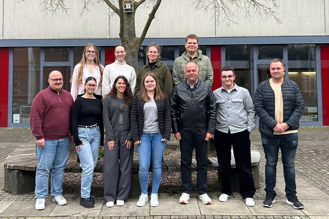 Die Projektgruppe: (v.l.n.r. vorne) Jan Krummer, Celine Wieland, Onja Busam, Carolin Brugger, Prof. Paul Witt, Jakob Bauer, Fabian Oelze; (v.l.n.r. hinten) Celine Brenner, Helene Hieber, Lena Marte, Michael Scholz