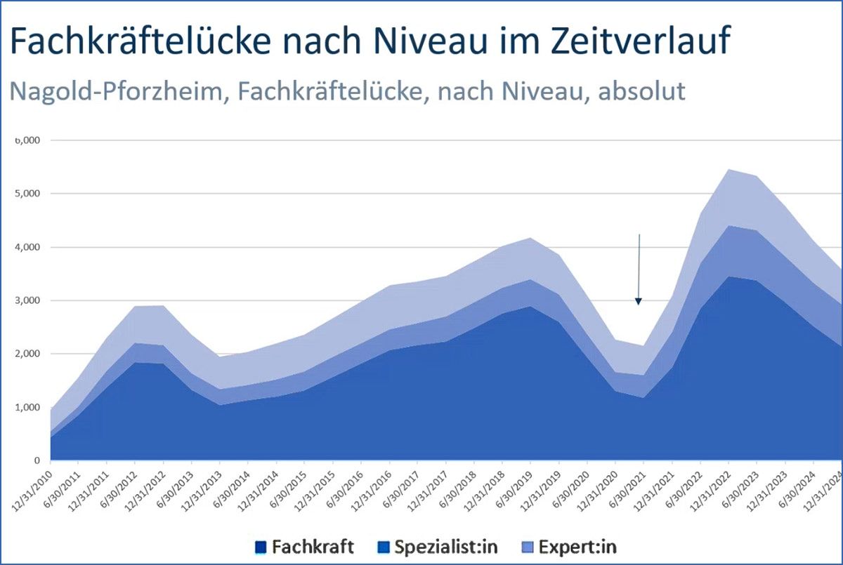 Die Fachkräftesituation im Nordschwarzwald ist im bundesdeutschen Vergleich überdurchschnittlich angespannt. Das offenbaren Zahlen aus dem Agenturbezirk Nagold-Pforzheim. Demnach blieb 2024 fast die Hälfte aller offenen Stellen (47,6 Prozent) unbesetzt und damit deutlich mehr als im Bundesdurchschnitt.