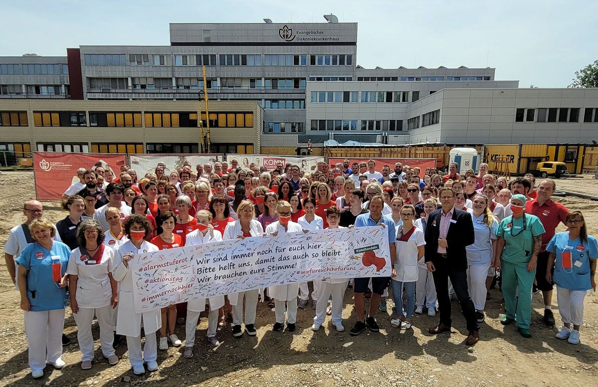 Die Krankenhäuser in Deutschland sind insbesondere aufgrund der hohen Preis- und Personalkosteigerungen massiv unterfinanziert. Da es auf der Ebene der Bundespolitik bis heute keine Signale gibt, dieses Thema ernsthaft anzugehen, beteiligte sich das Ev. Diakoniekrankenhaus am bundesweiten Aktionstag der Deutschen Krankenhausgesellschaft (DKG).