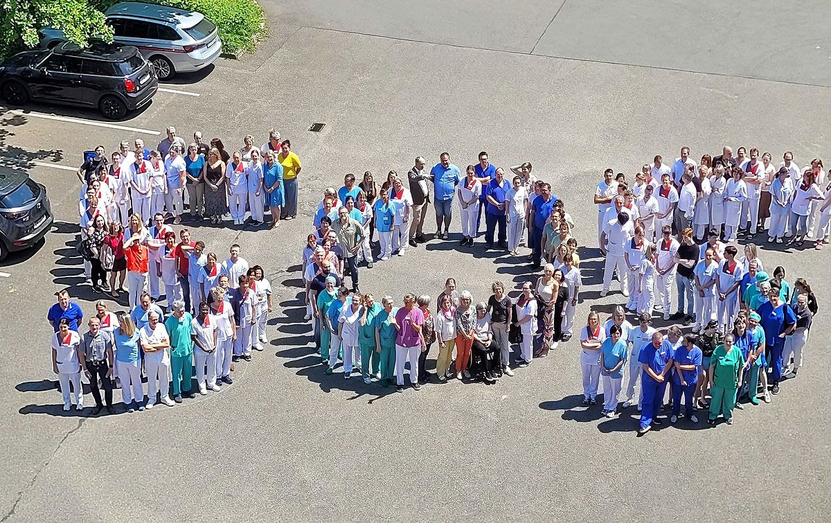 Mitarbeitende aus allen Abteilungen des Hauses trafen sich zu einer „aktiven Mittagspause“, um darauf aufmerksam zu machen, dass die Bundesregierung jetzt mit schnellen Hilfen handeln und eine nachhaltige Finanzierung der Krankenhäuser zur Aufrechterhaltung einer guten Patientenversorgung sicherstellen muss. Die Vertröstung auf die geplante Reform ist keine Lösung, da diese keinerlei zusätzlichen finanziellen Mittel beinhaltet und außerdem auch erst viel zu spät wirksam wird.