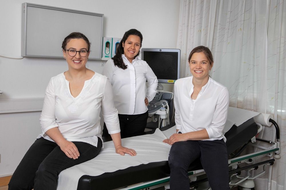 (von l. nach r.): Fr. Hannah Bekarew, Oberärztin, Stv. Leitung Brustkrebszentrum Fr. Ana Gonzales, Oberärztin Fr. Dr. Eveline Russe, Leitende Oberärztin Brustkrebszentrum
