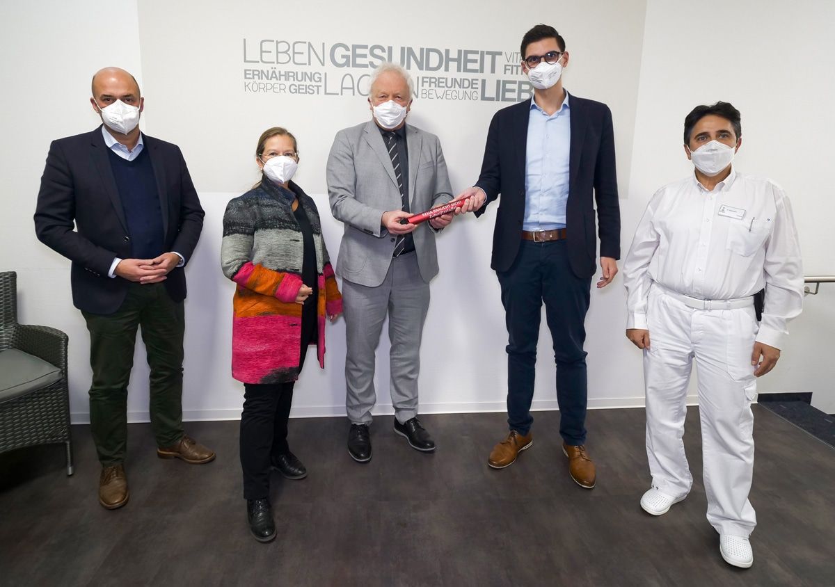 . Zu sehen sind (von l. nach r.): Bürgermeister Dr. Carsten Vogelpohl, Gemeinde Bad Bellingen Diana Stöcker, MdB CDU und Mitglied im Gesundheitsausschuss Martin Heßberger, Geschäftsführer DR.SPANG Reha-Kliniken Sepp Müller, MdB CDU und Stellvertretender Fraktionsvorsitzender der CDU/CSU-Bundestagsfraktion Chefarzt Ali Dabidian, Markgräflerland-Klinik