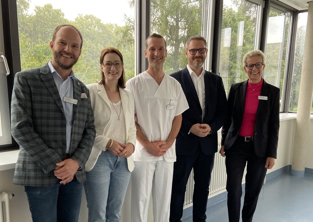 (v.l.n.r.): Personaldirektor Constantin Schmidt, stellvertretende Personaldirektorin Melanie Angielsky, Personaloberarzt Dr. Marcel Frick, Chefarzt Prof. Dr. Diehl und Vorstandsvorsitzende Claudia Bauer-Rabe freuen sich auf den Start des Pilotprojekts.