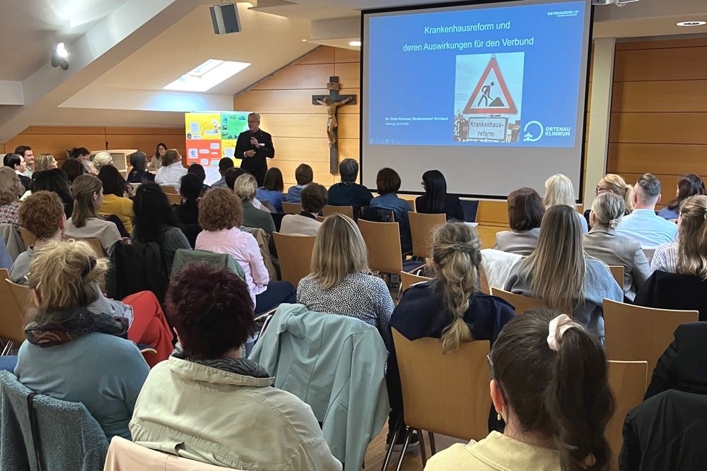 Am Nachmittag stellte sich zunächst die neue Vorstandsvorsitzende des Ortenau Klinikums, Claudia Bauer-Rabe, den Führungskräften des Pflege- und Funktionsdienstes vor. Dr. Peter Kraemer, Medizinischer Vorstand, gab anschließend einen Überblick über die wesentlichen Inhalte der Krankenhausreform, die neuen Leistungsgruppen „Bund“ und die Auswirkungen auf den Klinikverbund. „Um die Vorgaben der Reform zu erfüllen, ist das Ortenau Klinikum bei der sachlichen Ausstattung etwa mit Großgeräten, der vorgeschriebenen Besetzung mit Pflegekräften wie auch bei der Qualifikation des ärztlichen Personals gut aufgestellt“, so der Tenor seines Vortrages. Allerdings seien bisher noch viele Detailfragen zur Krankenhausreform unklar und im Rahmen der aktuellen Regierungsbildung noch Anpassungen zu erwarten.
