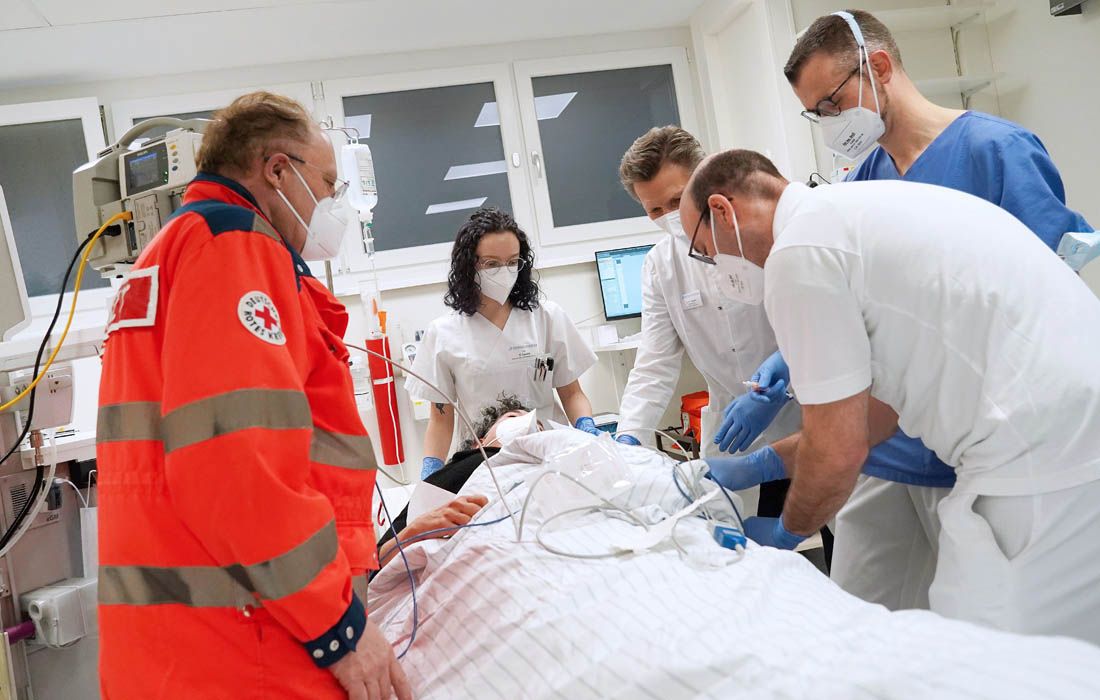 Interprofessionelles Team im Schockraum einer Notaufnahme.