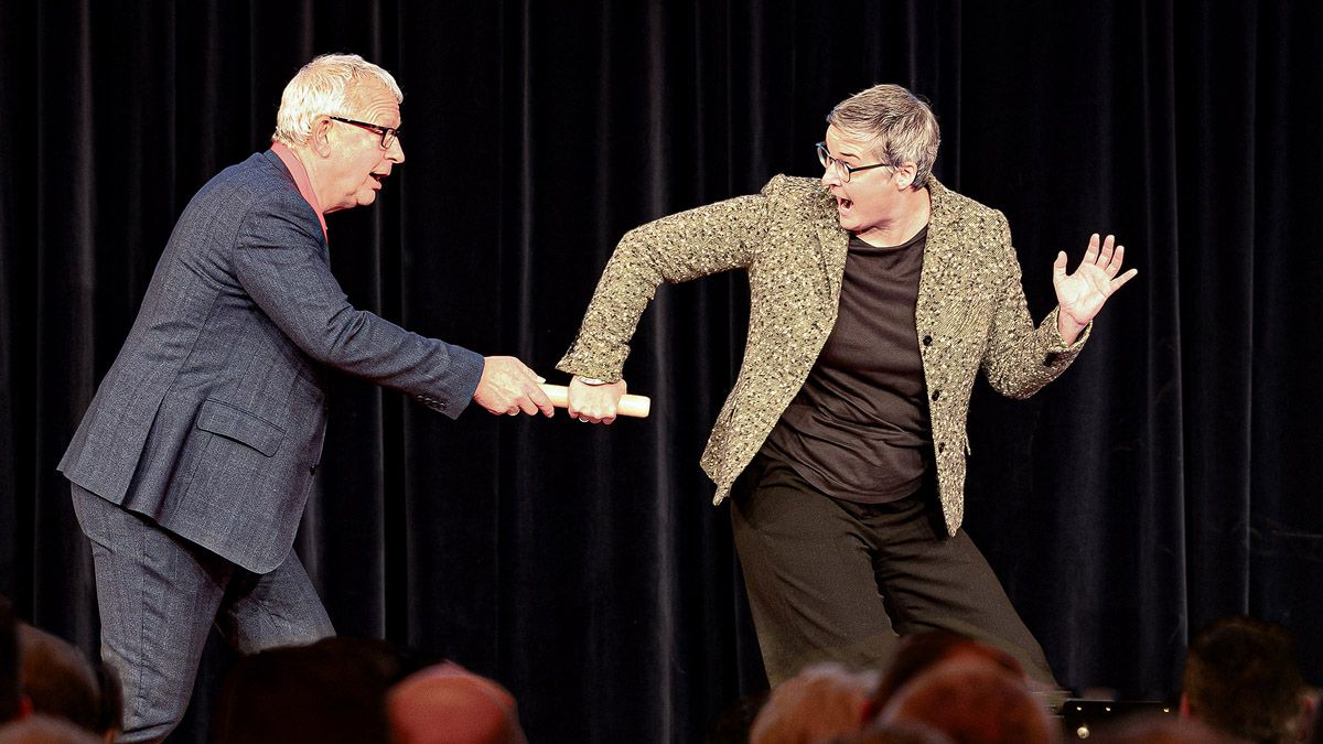Zum Abschluss holte Christoph Münzer seine Nachfolgerin Hanna Böhme auf die Bühne. Der symbolische Akt der Staffelholzübergabe wurde, passend zum humorvollen Charakter Münzers, als sportliche Einlage in Zeitlupe inszeniert. Das Staffelholz, das Münzer vor mehr als zwei Jahrzehnten übernommen hatte, wechselte nun den Besitzer.