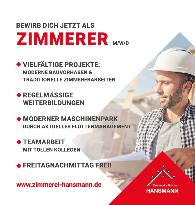 Ob man sein Traumhaus bauen, den Altbau energetisch sanieren lassen, einen Gewerbebau plant oder einfach eine andere der vielfältigen Leistungen eines soliden Holzbaubetriebes in Anspruch nehmen möchten. Die Hansmann Zimmerei-Holzbau GmbH aus Steinach steht als bewährter und qualitätsorientierter Meisterbetrieb in der Region Ortenau, Freiburg und Karlsruhe bis hin zum nahen Frankreich stets zur Seite. Hochwertige und zuverlässige Ausführung der uns übertragenen Arbeiten ist ihr Maßstab, Kundenzufriedenheit ihr Ziel.