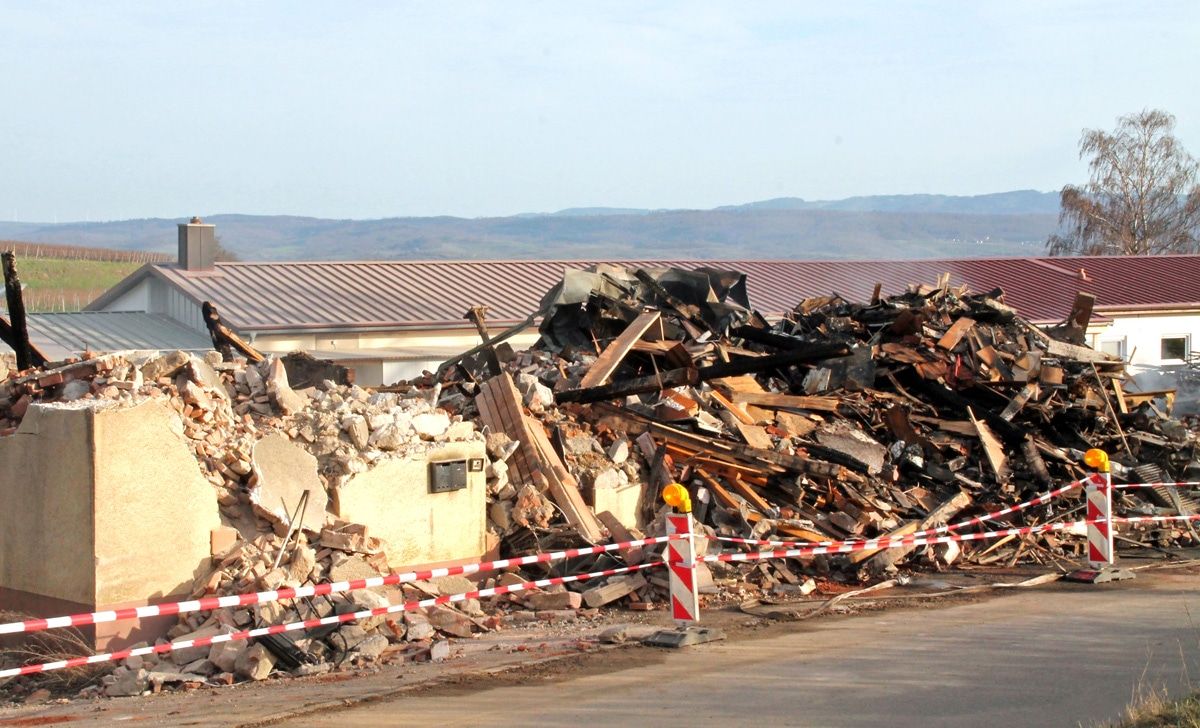 Die Wasserversorgung aus der Zisterne habe bei weitem nicht ausgereicht, so Boos. Wichtig war bei dem Vollbrand, das angrenzende Wohnhaus und die „Reblaus“ – das ist ein schlauchförmiges Gebäude, vor den Flammen durch eine Riegelstellung zu schützen