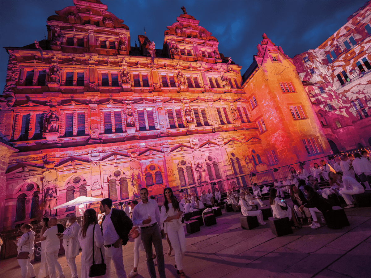 Manche Sommernächte sind nicht nur heiß, sondern auch komplett weiß. Im Schlosshof des Heidelberger Schlosses findet am 5. August wieder eine der größten und stilvollsten Partys der Region statt. Mit bis zu 800 Gästen, alle in weiß gekleidet, feiert die Heidelberger Schloss Gastronomie bei der White Night den Sommer mit allem, was dazu gehört: gute Musik und gutes Essen in einer außergewöhnlichen Location