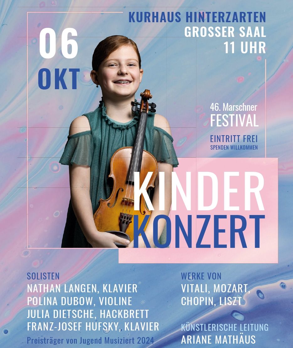 Am 06. Oktober 2024 startet das Marschner Festival Hinterzarten mit dem mittlerweile sehr beliebten Kinderkonzert.