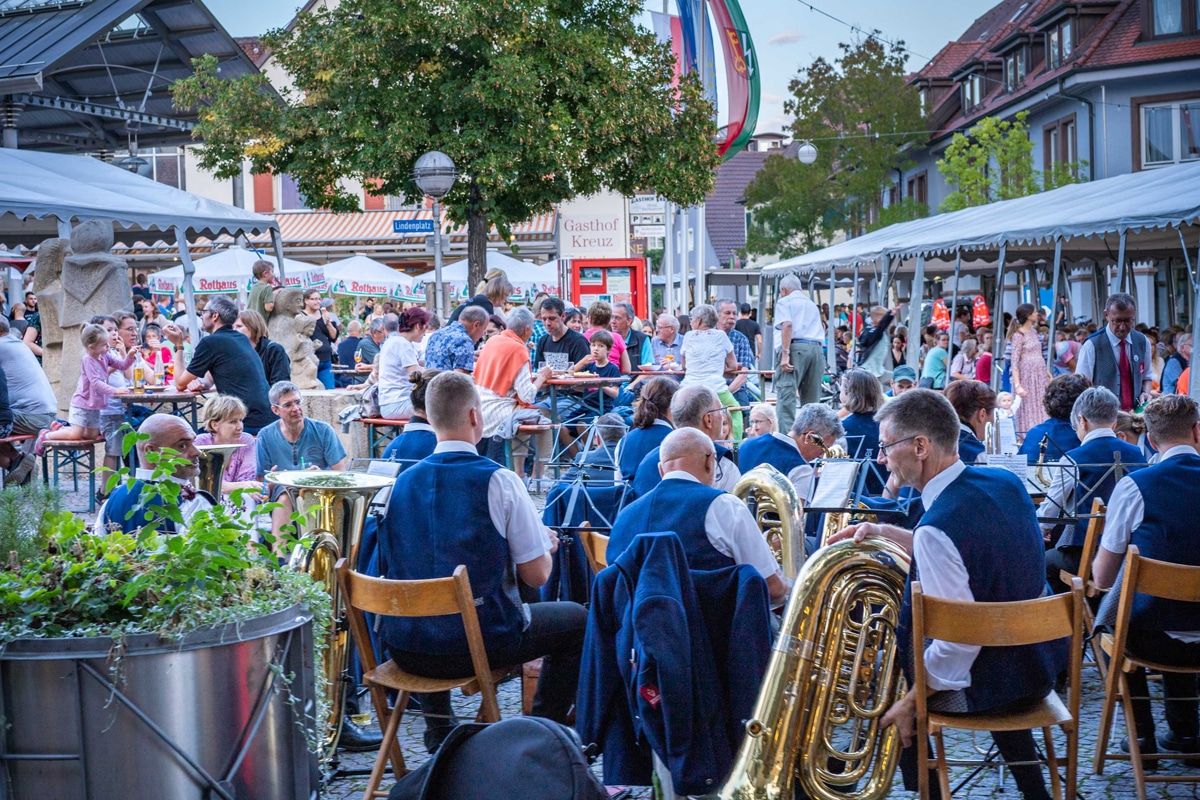 Der Musikverein Heitersheim eröffnet das Stadt- und Kirchenfest auf dem Lindenplatz in Heitersheim.