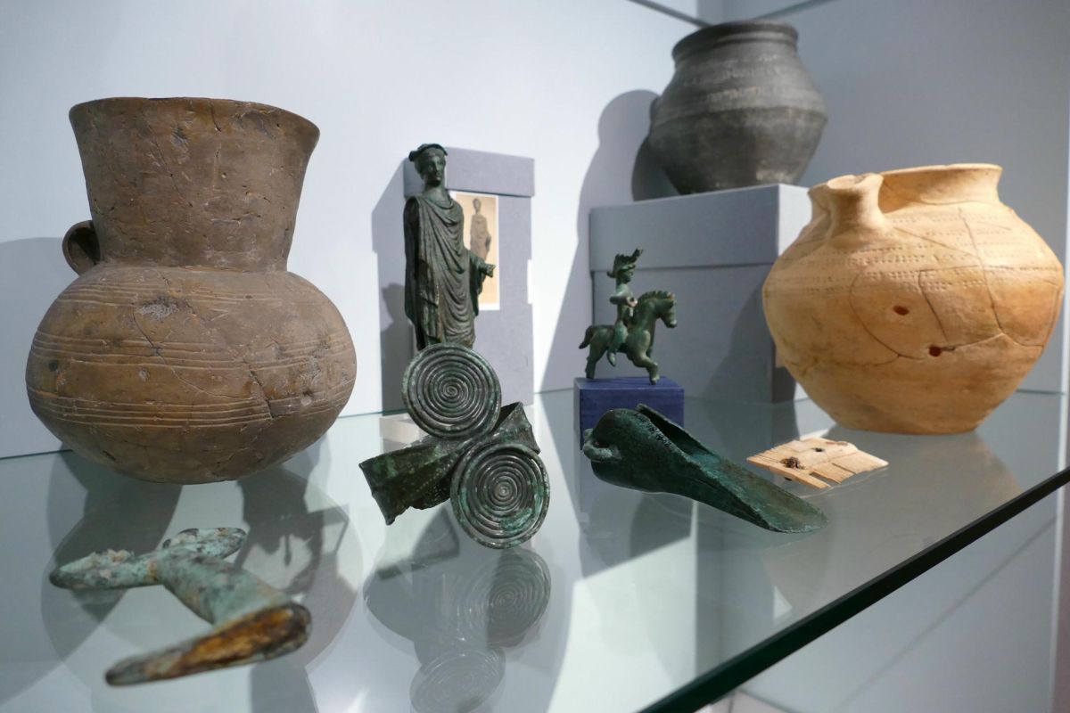 Bronzezeitlicher Spiralarmreif und andere archäologische Funde im Stadtmuseum.