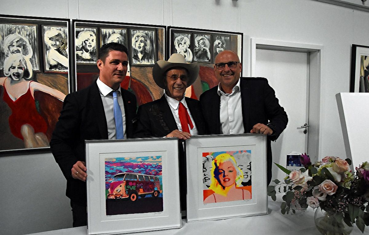 Ted Bauer (CEO Queens Kunstgalerien), James Francis Gill und Stefan Schlatterer Oberbürgermeister der Stadt Emmendinge