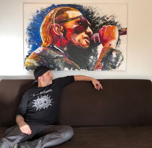 Jörg Heitz: Mein künstlerisches Schaffen, welches ich Artcore nenne (eine Ableitung des Musikstils „Hardcore“), entstand als ich begann Musiker zu malen. Mich faszinierte schon immer der üppige Umgang mit Farbe auf Leinwand, wie es Actionpainter Jackson Pollock praktizierte, der expressiv, verstörende Stil Francis Bacons oder auch das Plakative in der Pop Art und Streetart hat mich als klassisch ausgebildeten Grafikdesigner beeindruckt! So habe ich Musik und Kunst verbunden und somit entstand ein neuer Postpop Stil mit expressionistischen Zügen... - A R T C O R E -