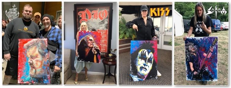 Jörg Heitz: Nun ja, in den fünf Jahren als „Maler“ habe ich nur positives Feedback von allen Seiten bekommen! Durch meine Kunst habe ich Musiker und Band wie Feine Sahne Fischfilet, New Model Army, Sodom, Destruction usw. kennengelernt! Im Wohnzimmer von Gene Simmons (Kiss) hängt eines meiner Portraits, der Dalai-Lama hat mir ein Bild unterschrieben, ein weiteres hat er. Das gibt mir natürlich auch eine gewisse Anerkennung, dass meine Arbeit einen professionellen Status hergibt… ich sage es mal so… es gibt Kunst und es gibt Kitsch! Ich sehe mich und meine Kunst nicht auf einem Kunsthandwerksmarkt. Wer meine Bilder kaufen möchte, kann auf meiner Webseite www.derheitzer.de mit mir in Kontakt treten. Da bekommt man ein individuelles Angebot von mir.