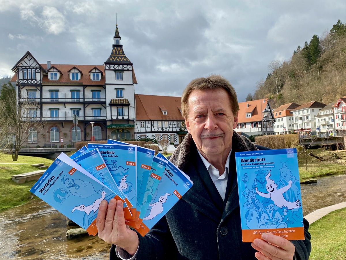 „Die Idee, ein Kinderbuch zu schreiben, war schon lange in meinem Kopf verankert“, berichtet Herbert Krempel aus Bad Herrenalb. Geistreich und äußerst kreativ entwickelte der einstige Bibliothekar in Coronazeiten eine liebenswerte Kinderbuchfigur, um sich von Fernweh und Reisesehnsüchten abzulenken, „denn Geschichten kann man auch zu Hause erfinden“. Daraus entstanden ist „Wunderfietz“, das kleine Unordnungsgespenst das bei Geisterreisen rund um den Globus abenteuerliche Geschichten erlebt.
