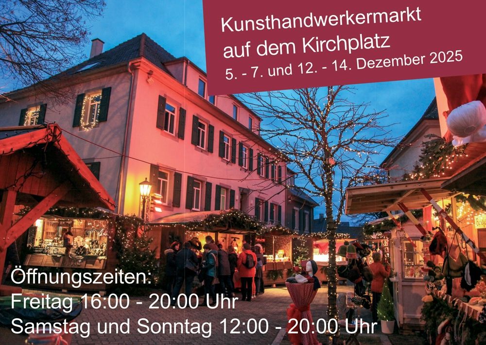 Der Kunsthandwerkermarkt auf dem Kirchplatz ergänzt das Angebot an den Adventswochenenden vom 5.–7. und 12.–14. Dezember. Über 30 Ausstellerinnen und Aussteller präsentieren hier ihre liebevoll gefertigten Unikate, kreative Geschenkideen und handgearbeitete Kunstwerke.