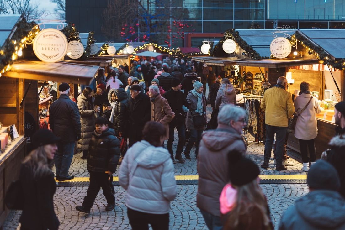 Empfangen werden die Besucher wie immer von einem prächtig geschmückten Weihnachtsbaum im Eingangsbereich des Marktes. Das harmonisch gestaltete Hüttenensemble und der liebevoll dekorierte Glühweingarten im Herzen des Weihnachtsmarktes verleihen dem Platz eine warme, festliche Ausstrahlung. Sie schaffen eine Atmosphäre, die zum Verweilen einlädt und echte Weihnachtsgefühle weckt – voller Lichterglanz, Duft von Gewürzen und dem Zauber der Adventszeit.